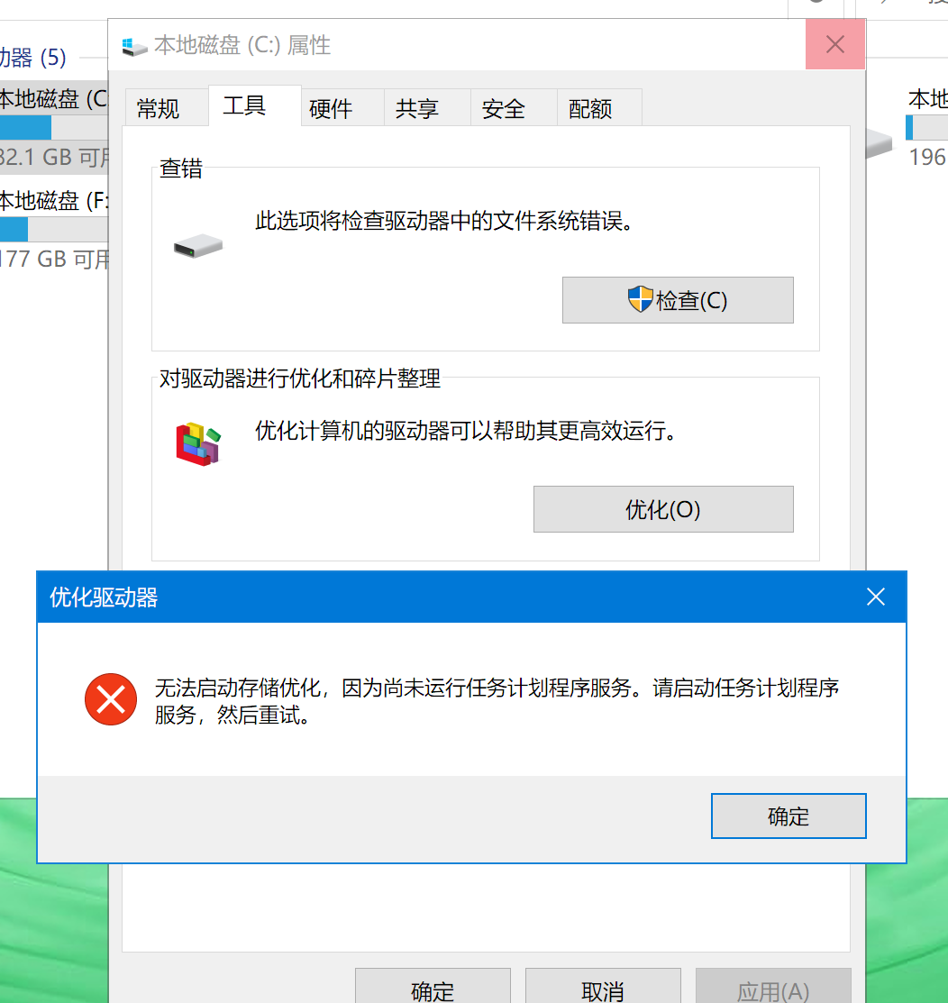 本地磁盘--属性--工具--点击【优化】就报错,能否修复一下,原版不会报错的
