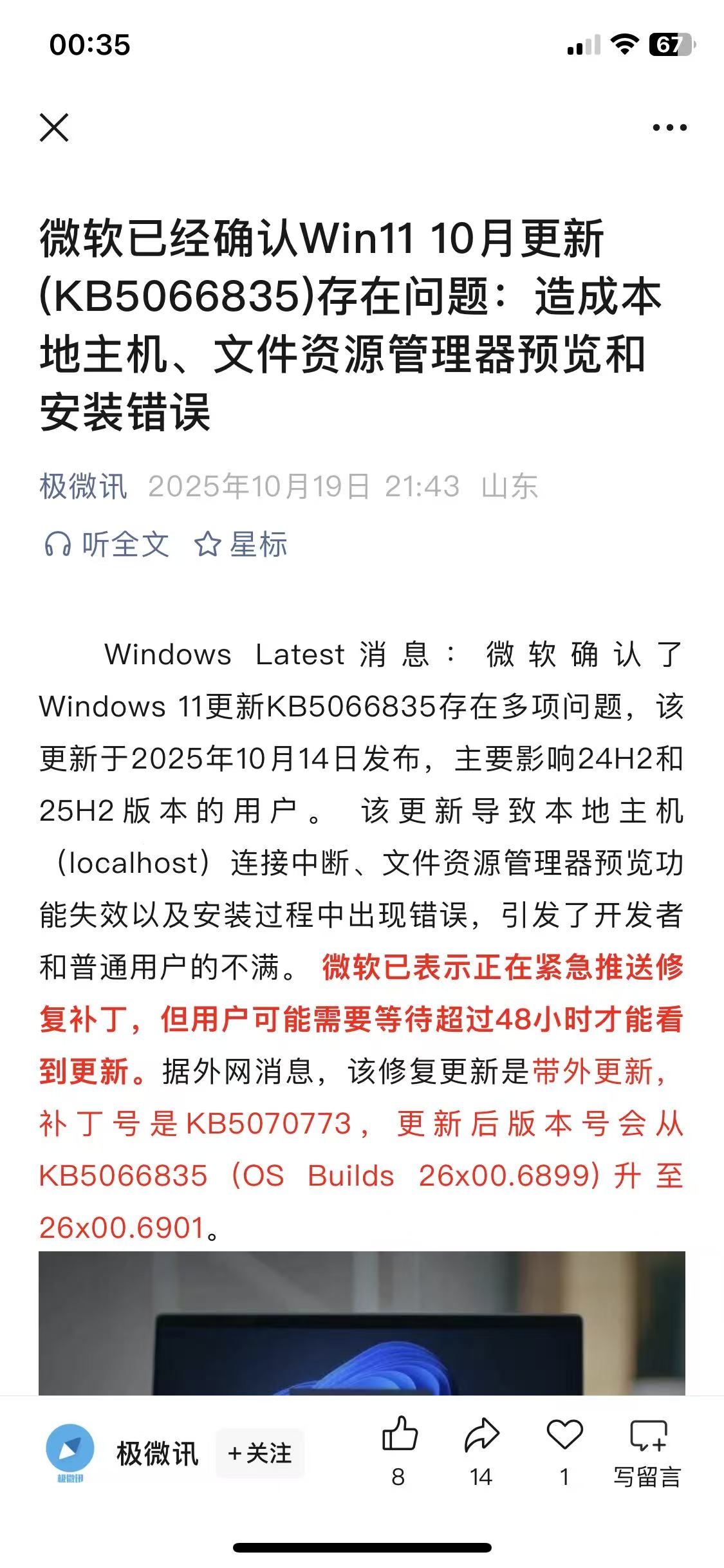 可48小时后通过https://www.catalog.update.microsoft.com/Search.aspx?q=KB5070773下载最新补丁,更新后版本号由26x0.6899升至26x00.6901